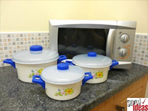 Microwave Cooking Pots With Colour Changing Lids (541) - Lids change colour when food is cooked