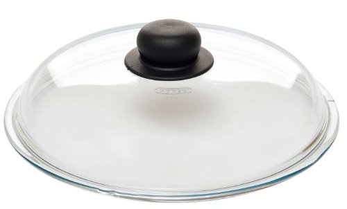This round lid from Pyrex will fit any 24cm saucepans, pots and frying pans. The lid is convex shape and includes a black, plastic handle.