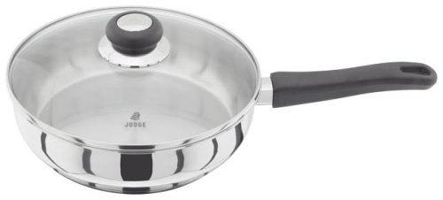 This 24cm saute pan from the Judge Vista range is made from 18/10 stainless steel and has a vented glass lid to allow you to monitor your cooking. With cool knobs and handles in a black Phenolic finish, this is a versatile and attractive saute pan.