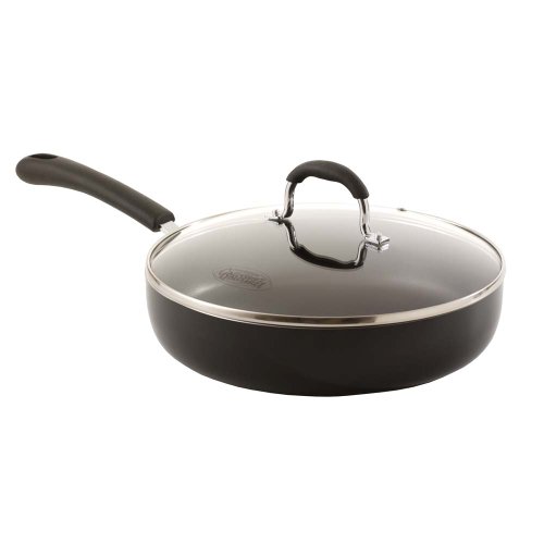 Our classic black enamelled Gourmet sauté pan is constructed from 3.5mm lightweight aluminium which is renowned for its excellent even heat distribution properties and coated with a tough Teflon Classic non-stick lining so food won't stick or burn (and washing up is a doddle). Generously sized at 28cm (3.7 litre) it is shallower than the stir fry pan with straighter sides so it can double up as a frying pan when used without its lid and is also ideal for cooking larger family meals such as paella or risotto. With a self basting glass lid and heat-resistant silicone handle which stays cool on the hob so you won't get your fingers burned! Suitable for all cookers except induction and safe for oven and dishwasher use.