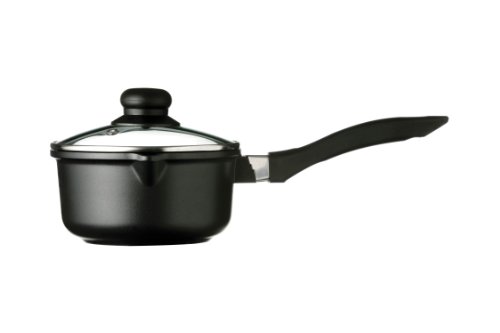 Premier Housewares Tenzo16 cm Teflon Coated Black Aluminium Milk/ Saucepan with Glass Lid
